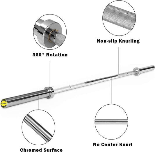 Barbell Bar for 2" Olympic Plates, Home Gym Weightlifting Bar 4Ft Solid Chrome Weight Bar 5Ft Fitness Training Curl Barbell 7.2Ft